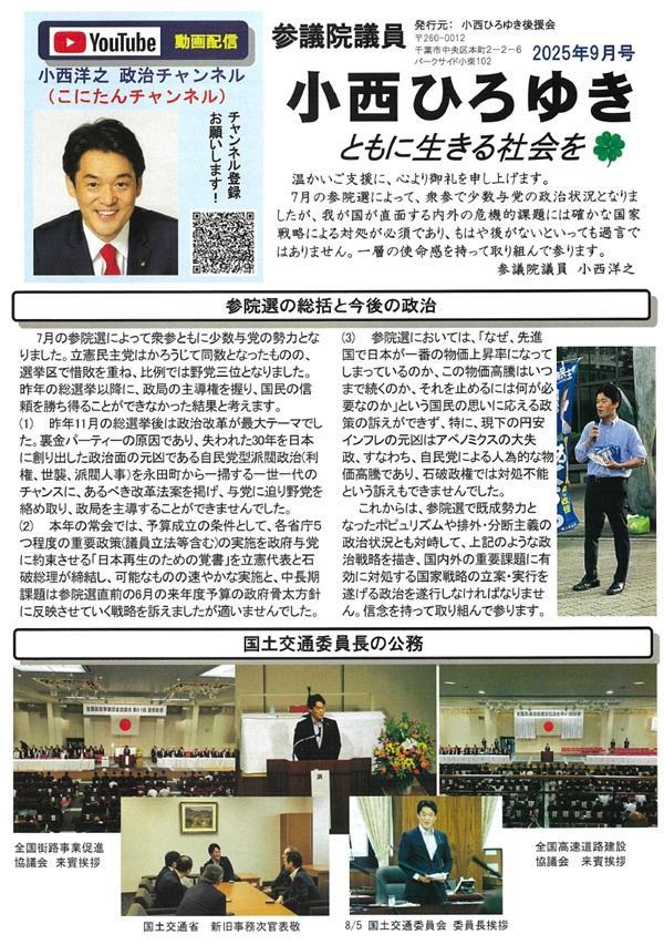 「小西ひろゆき」参議院議員から国政報告が届きました!