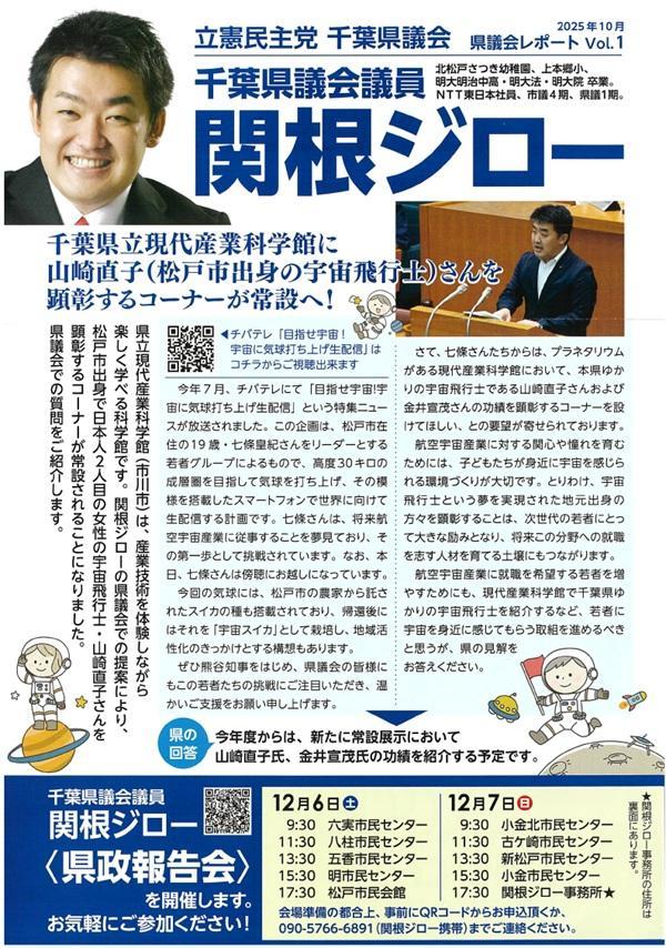 ご報告「関根ジロー」千葉県議会議員【松戸市選挙区】
