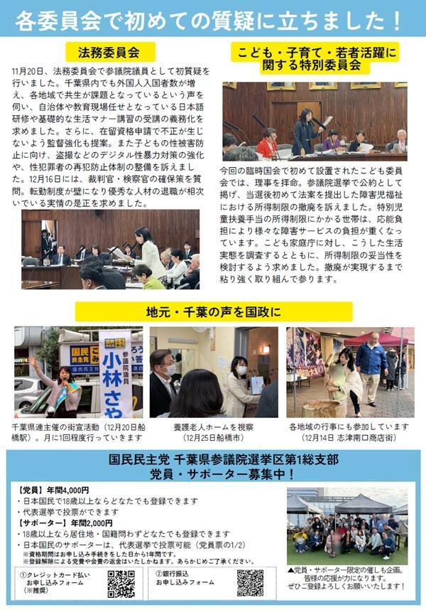 ご報告「小林さやか」参議院議員【千葉選挙区】