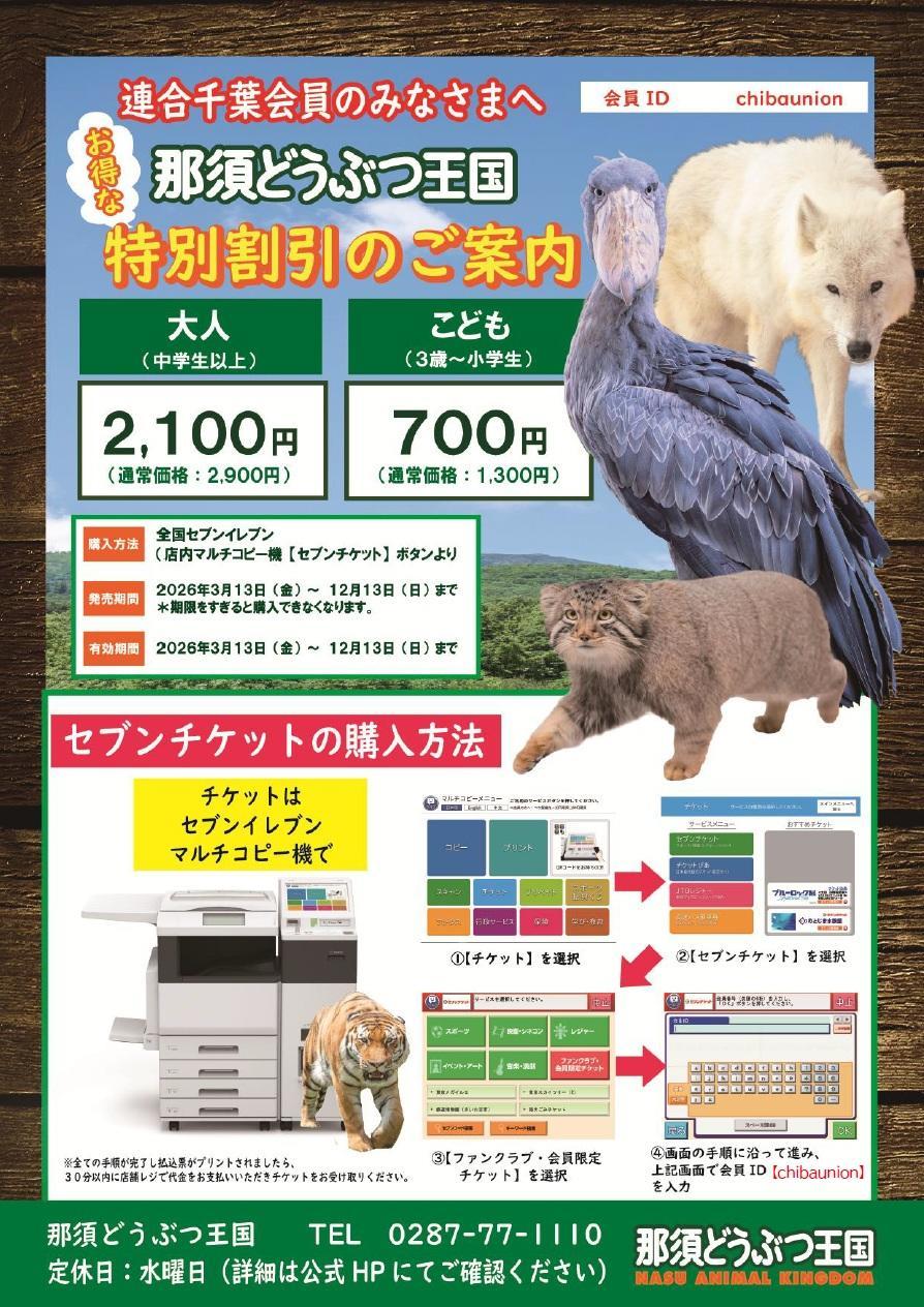 那須どうぶつ王国 特別割引のご案内