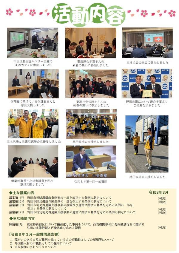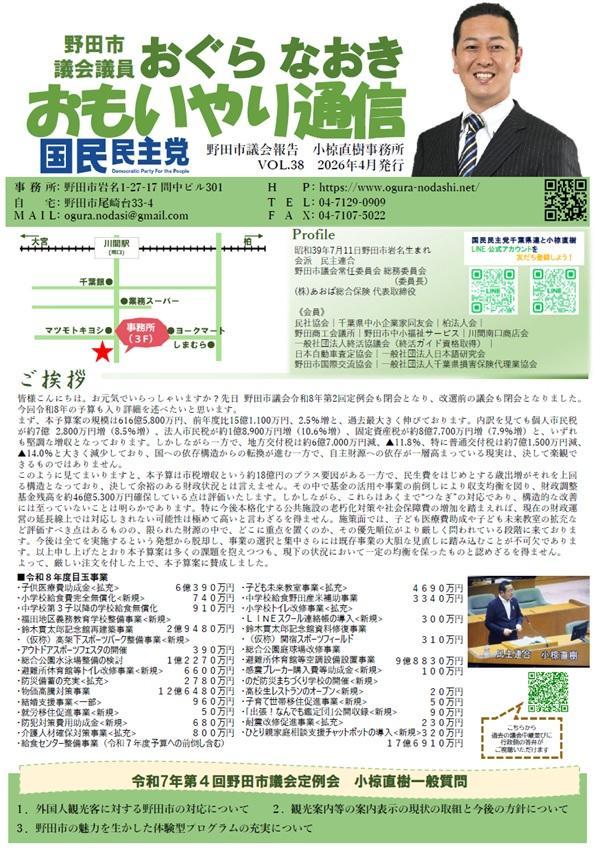 「小椋 直樹」野田市議会議員から活動報告が届きました!