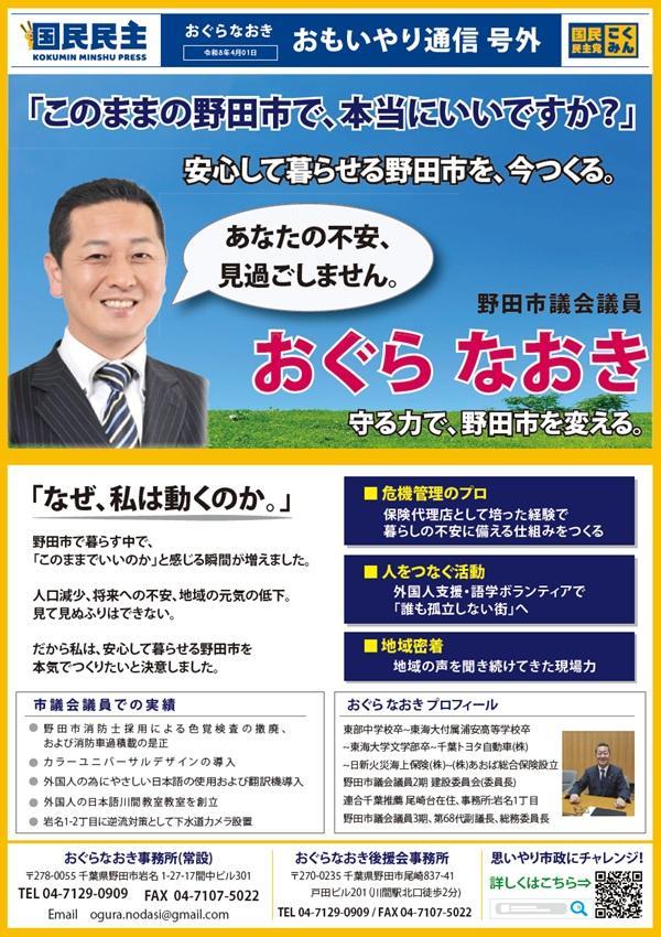 ご報告「小椋 直樹」野田市議会議員