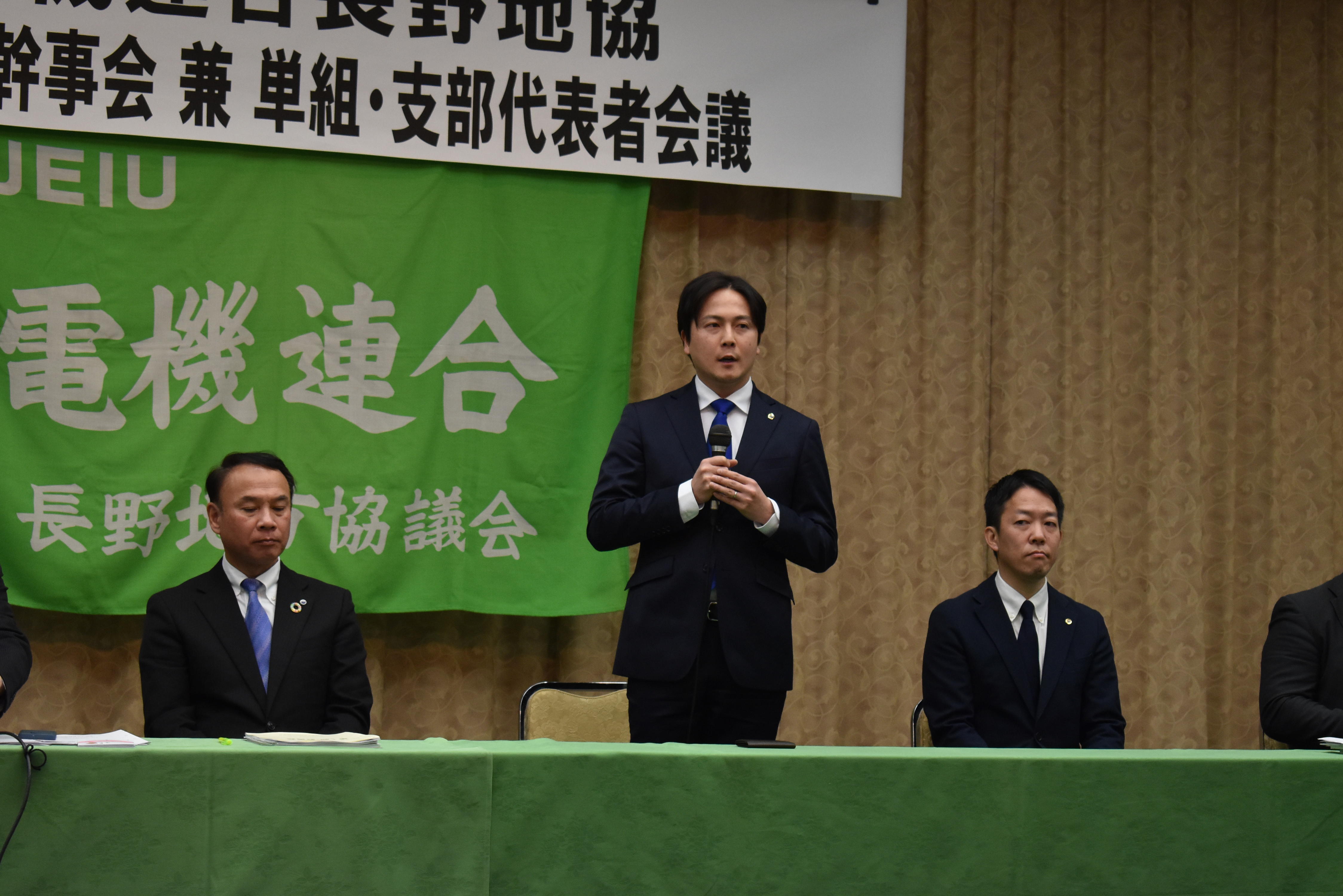 2025年1月14日(火)、ホテル清風園(千曲市)において71名/35組合が出席して開催されました。組織内公認候補の平戸航太氏もかけつけてくれました。また、OKIネクステック労働組合OKH支部が長野地協に加盟しました。 ・電機連合第111回中央委員会議案説明(高橋中央執行委員) ・電機連合共済の推進について(森川事務局長)