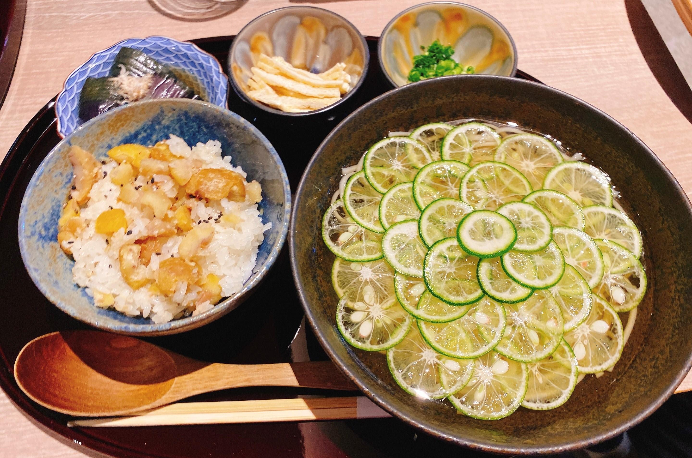 京都で人気の「比沙家」さんの東京店でランチを食べてきました。①京都のおばんざい ¥1.380②冷やしすだちヤーコンうどん ¥1.680