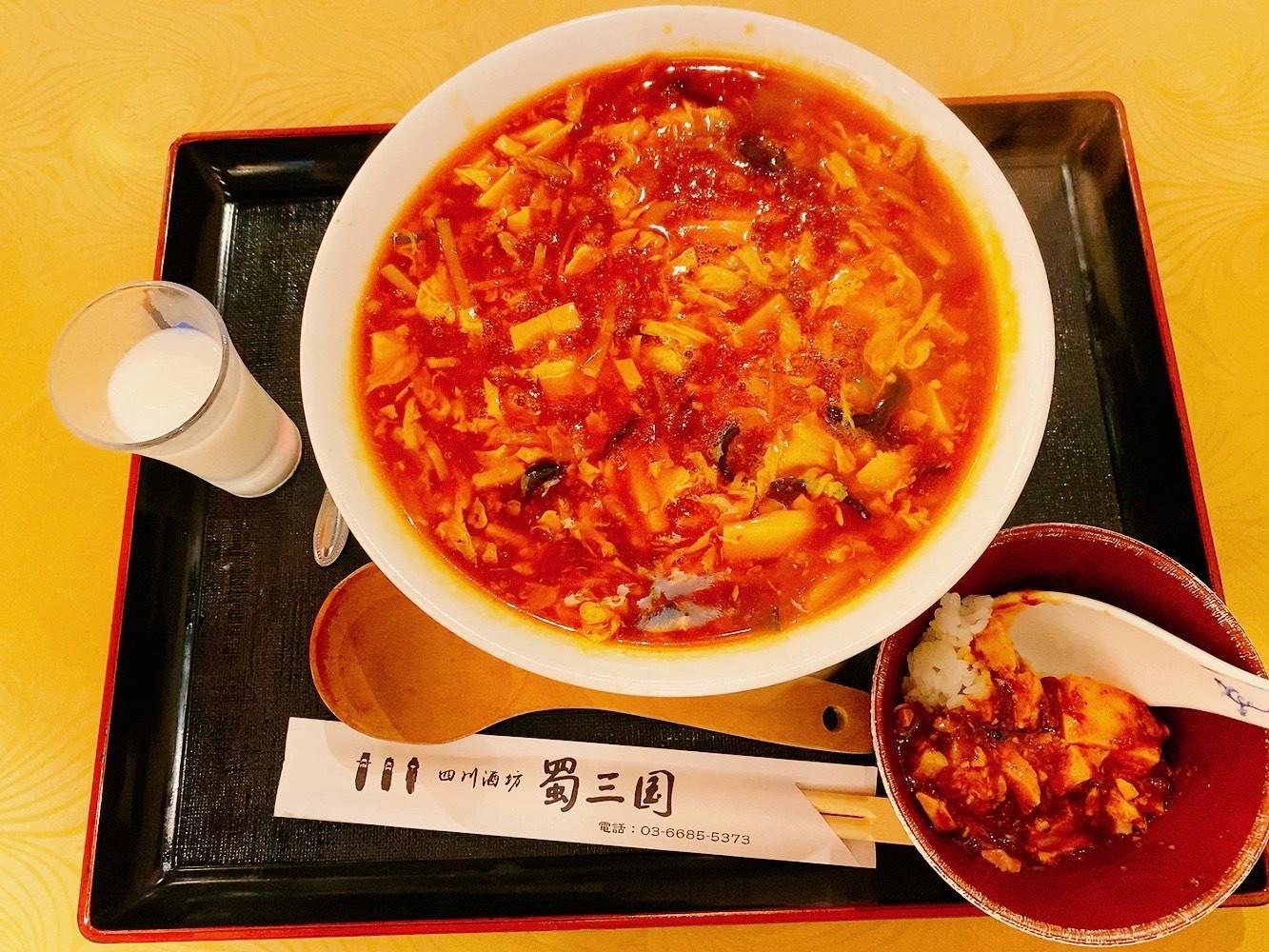 新橋駅から徒歩2分くらいの中華料理屋です。1000円以内ランチもたくさんあります。美味しかったです!!酸辣湯麺;950円(ミニ麻婆豆腐月)レバニラ:830円