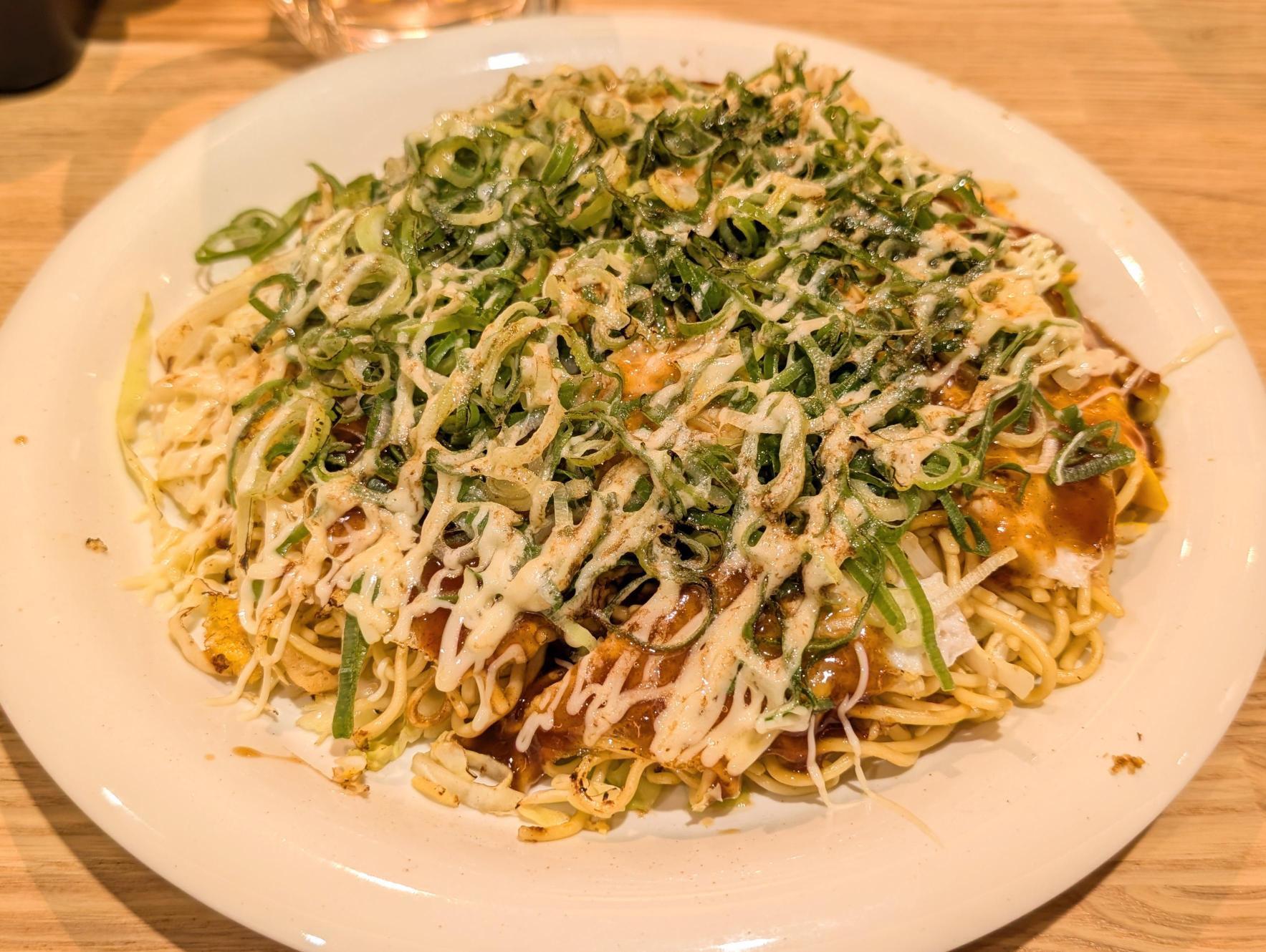 日比谷国際ビル 熱々鉄板チェインズに行きました。お昼時で中々の混み具合でした。画像2枚目は肉玉そば(900円)+炙りネギマヨトッピング(150円)です。ボリューム満点で美味しかったです。
