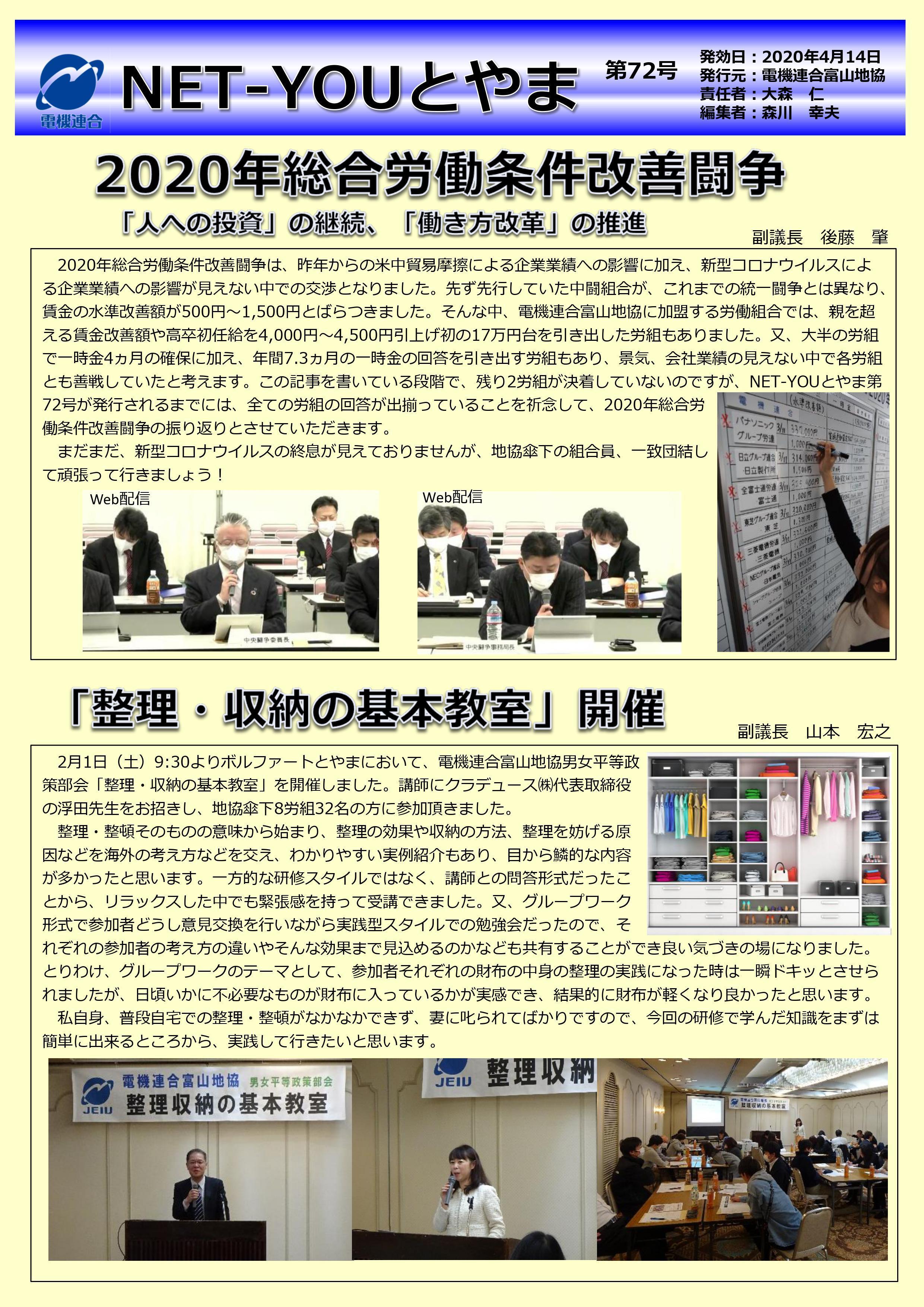 電機連合富山地協機関紙「NET-YOUとやま」第72号を 発行しました!
