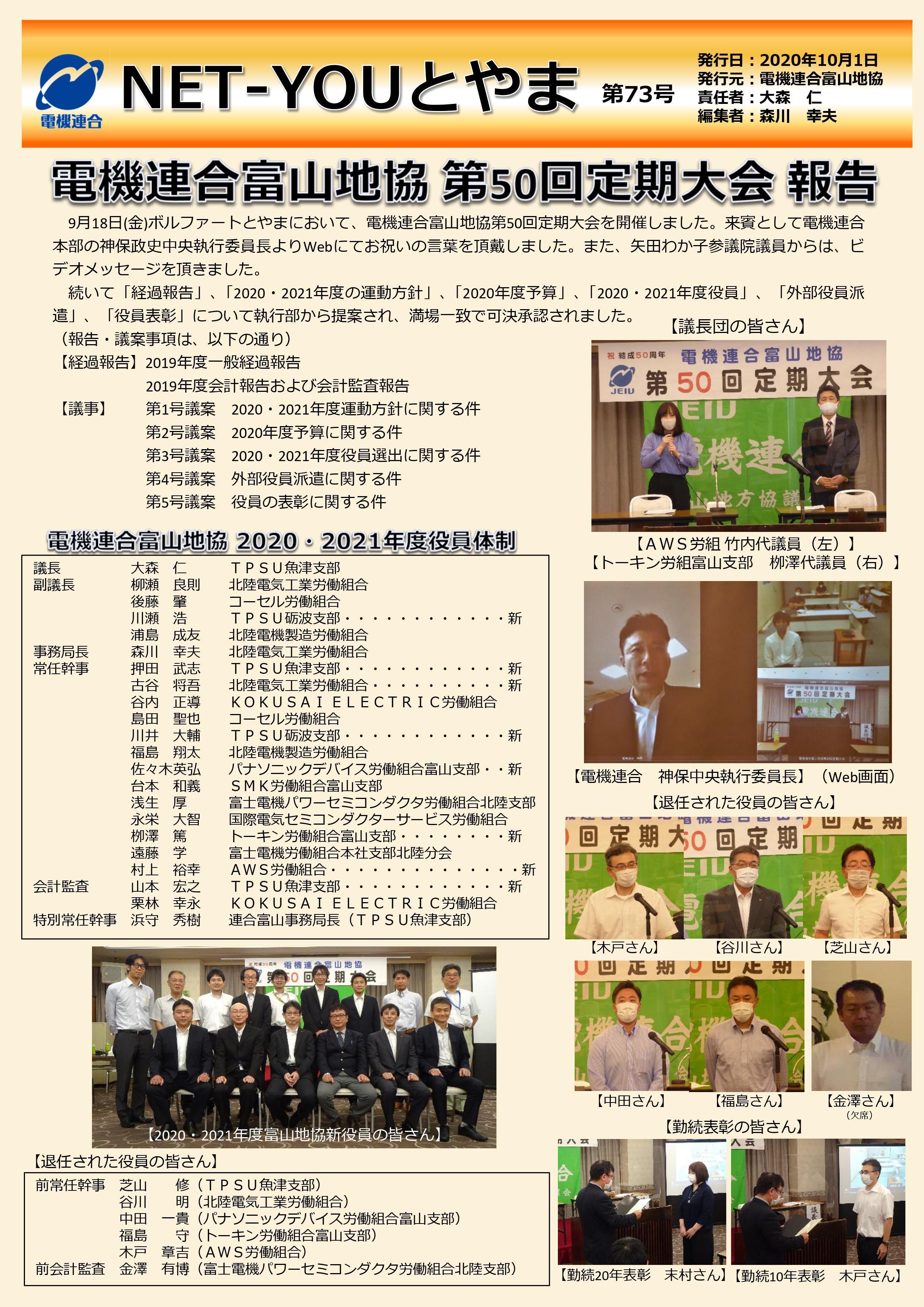 電機連合富山地協機関紙「NET-YOUとやま」第73号を 発行しました!