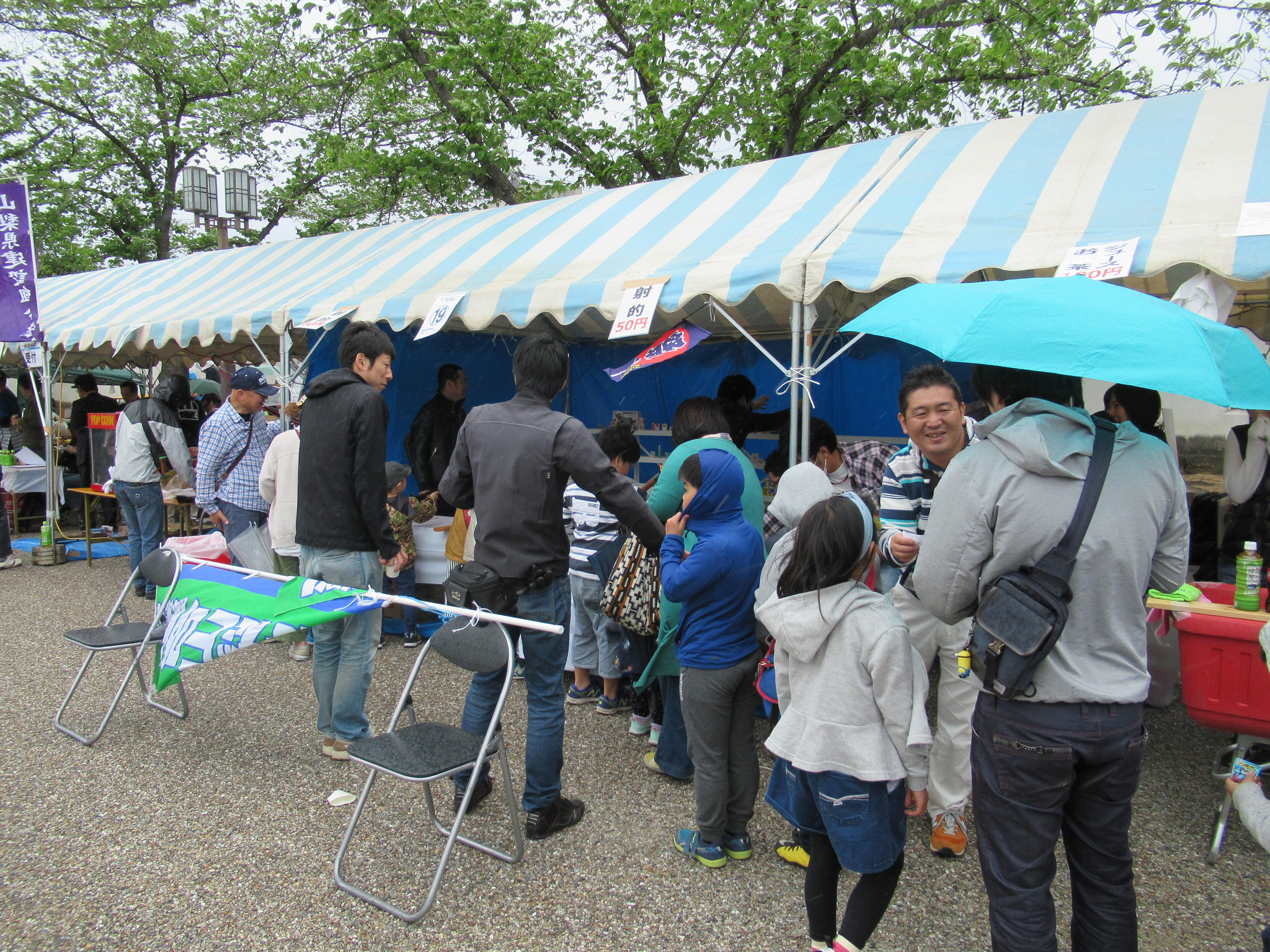 4月27日(土)連合山梨第90回メーデーが舞鶴城公園において開催されました。小雨のぱらつくあいにくの空模様のなか、多くの組合員に参加いただき、アピール行動・式典・祭典を盛り上げていただきました。電機連合では、毎年恒例となっております「ふれあいテント(ビール・飲料の販売、射的コーナー)」を出店し、メーデーの盛り上げに貢献しました。