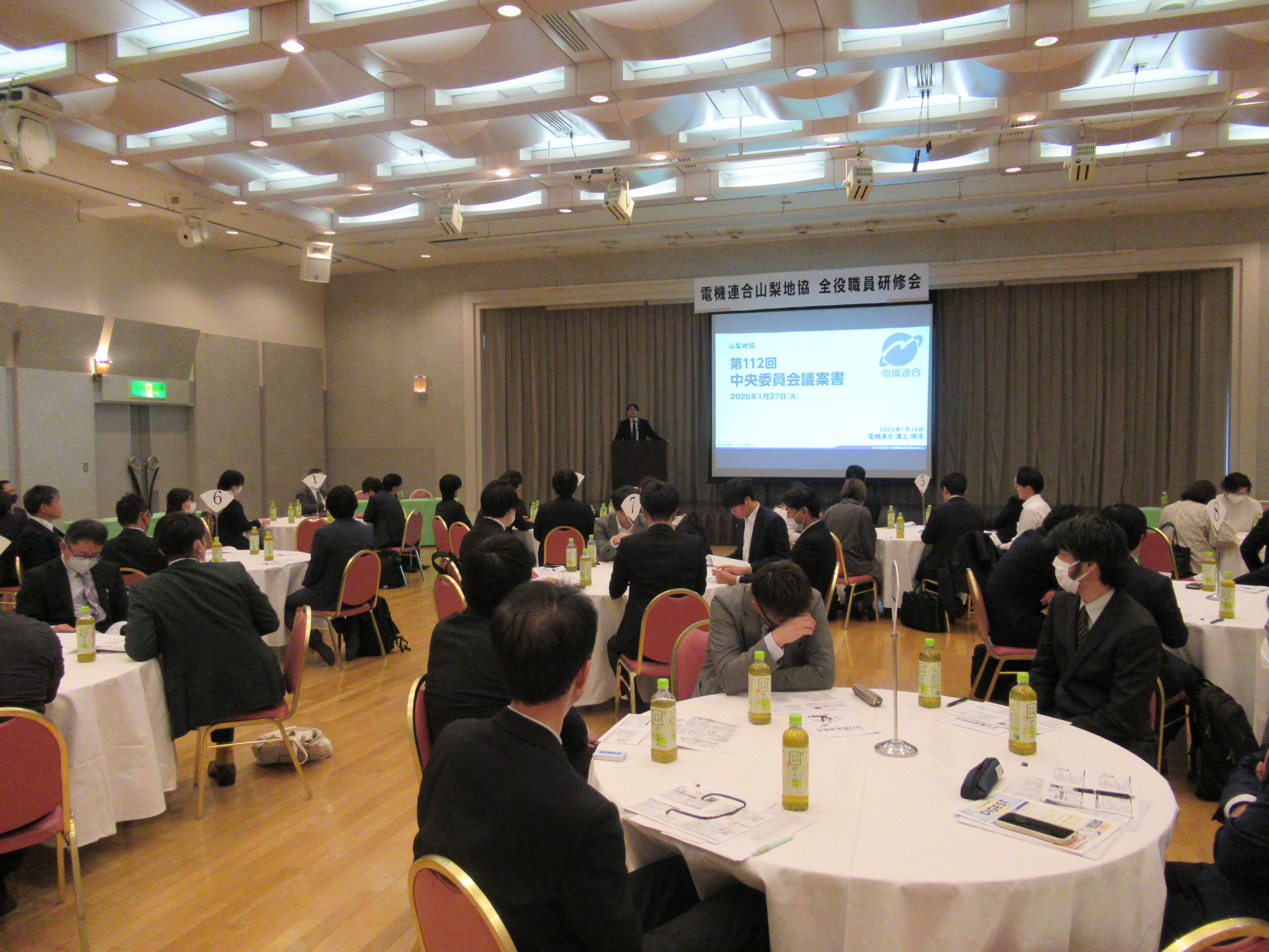 2026年1月14日(水)アピオ甲府において、加盟組合の役員・書記約100名に参加いただき、毎年恒例となっております全役職員研修会を開催しました。